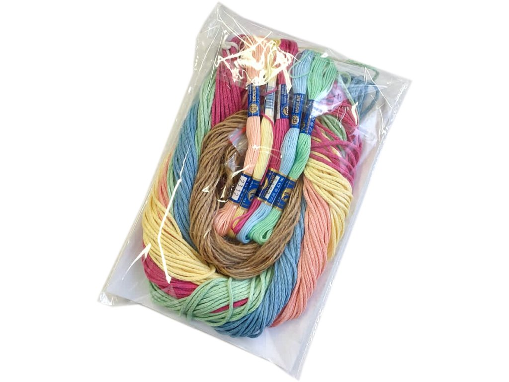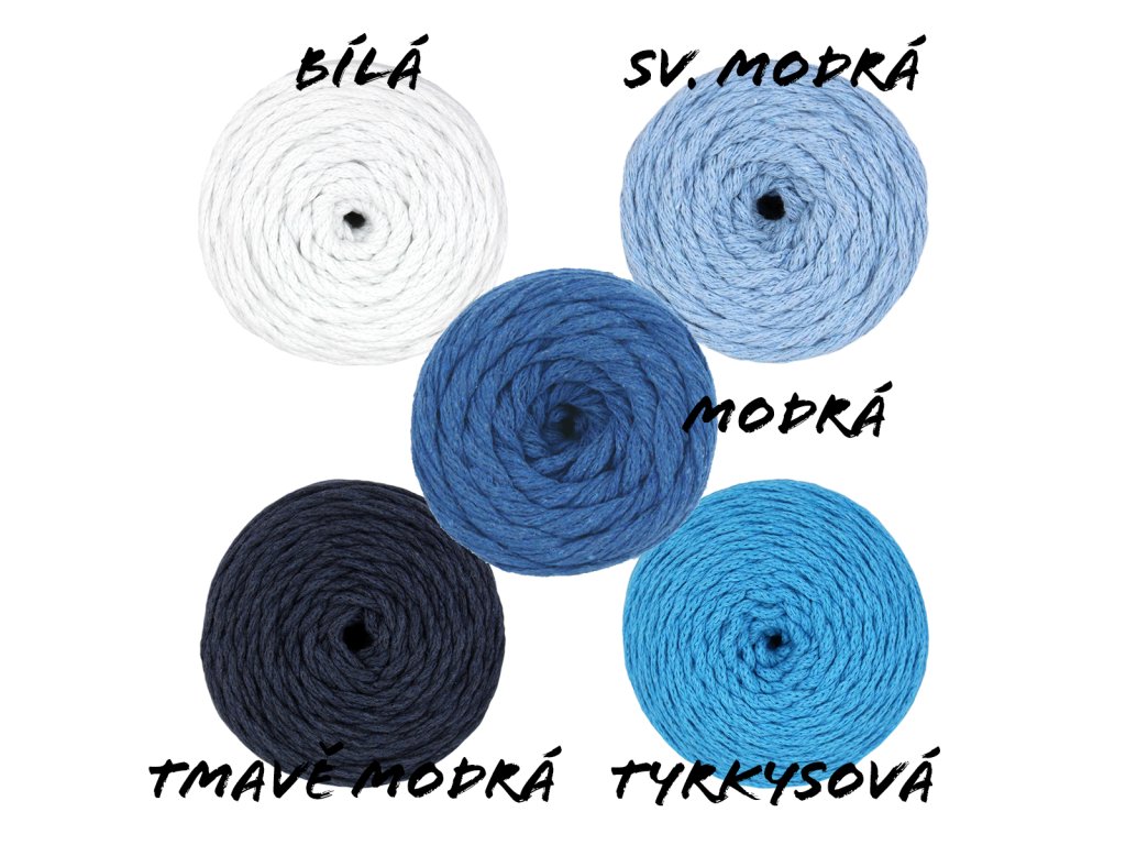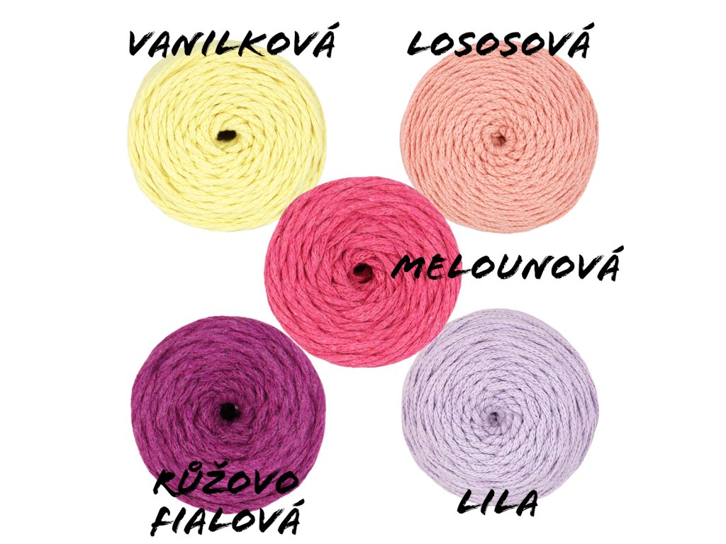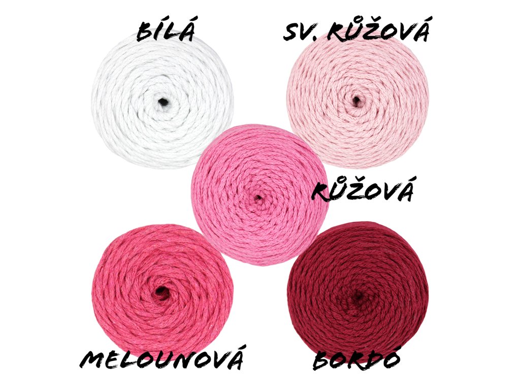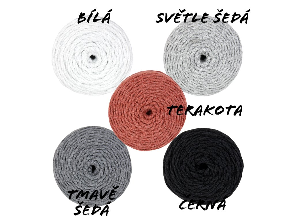 V balení je potřebná metráž příze Cordy macrame 2,5mm (odstín dle zvolené varianty sady). Sada obsahuje také jutový provázek, přízi Mouline, tupou jehlu a sekaný drát - již potřebnou délku na vajíčko.