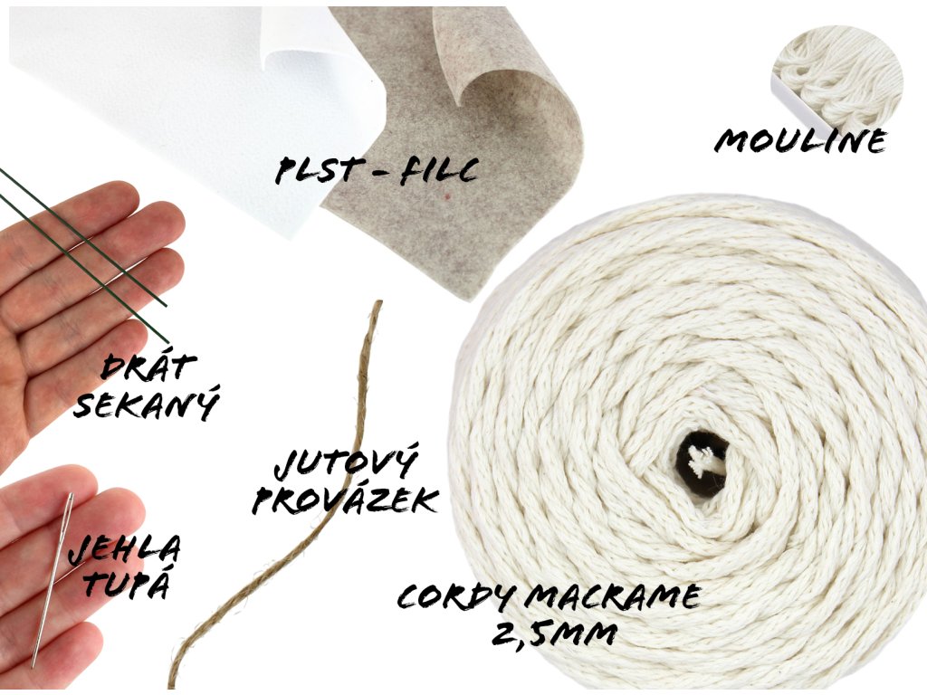 - příze Cordy macrame 2,5mm (odstín dle zvolené varianty sady).