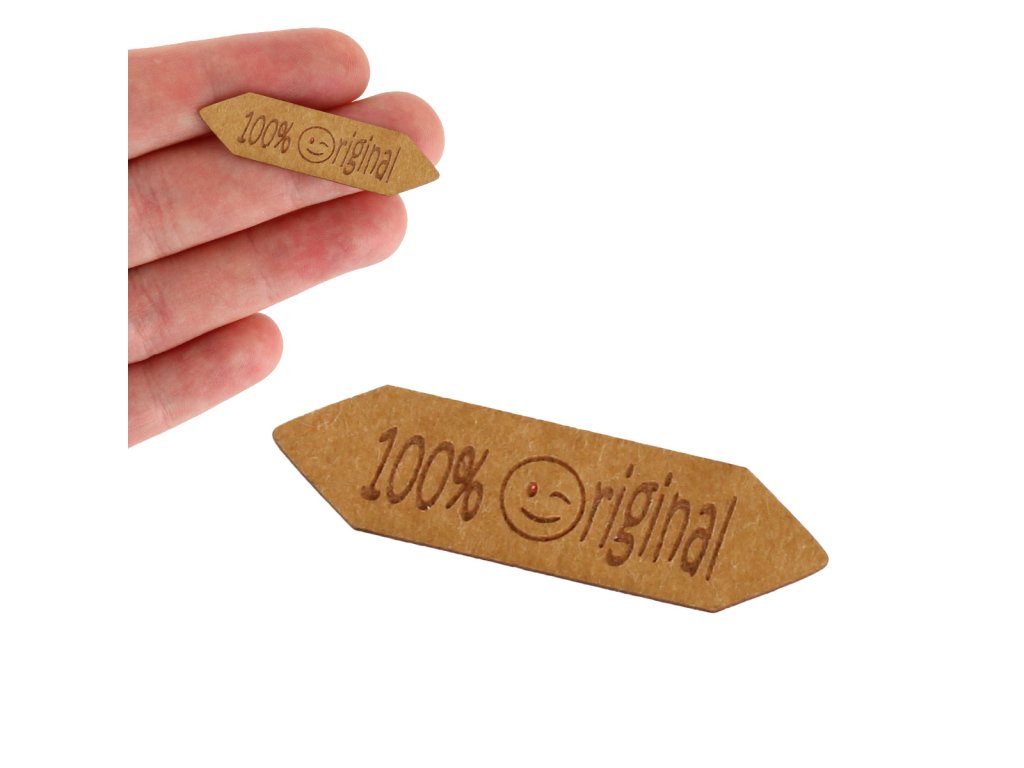 Cedulku z pratelného papíru s jednostranný nápis "100% originál".