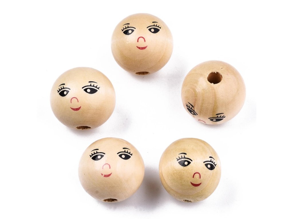 Dřevěné korálky s malovaným obličejem