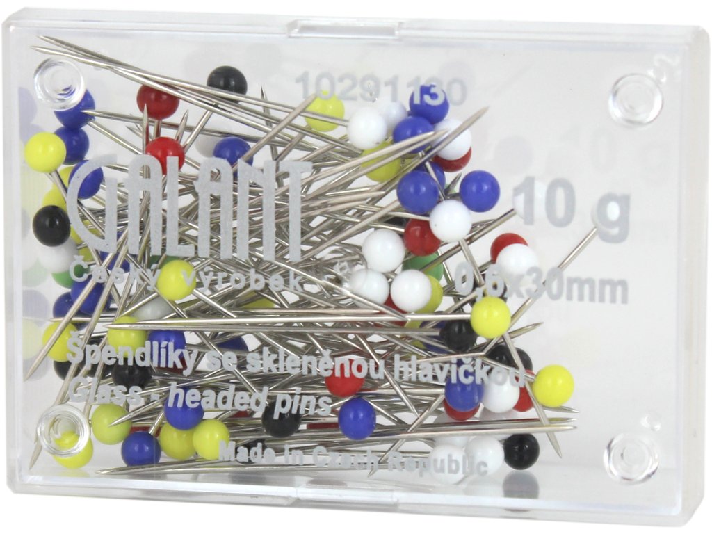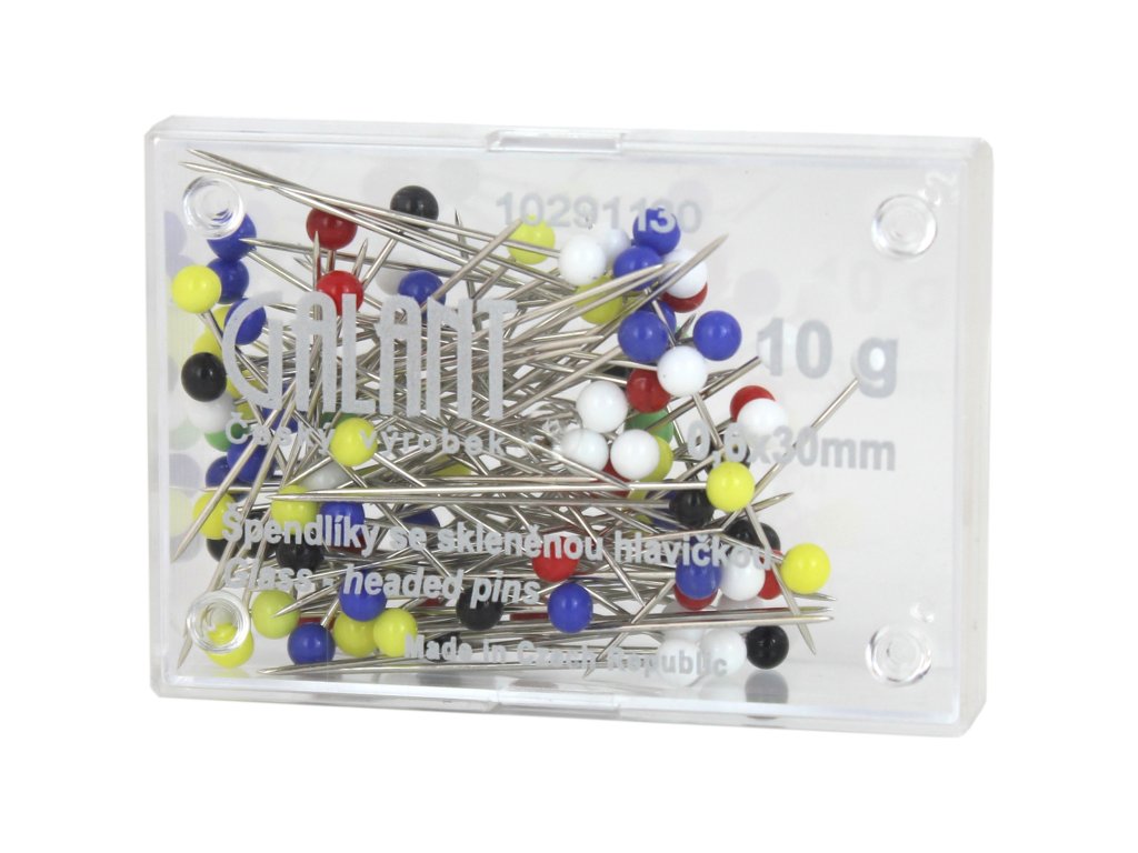Špendlíky se skleněnou hlavičkou - barevné - 0,6x30mm - krabička 10g