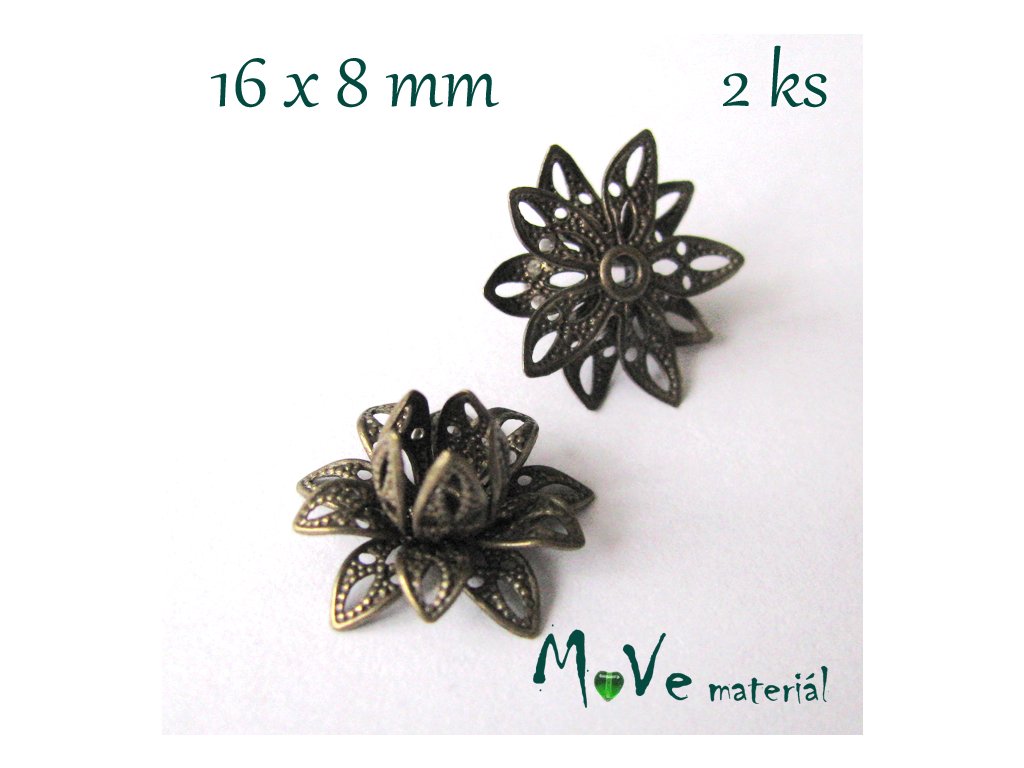 Filigránový květ - kaplík 16x8mm, 2ks antik bronz