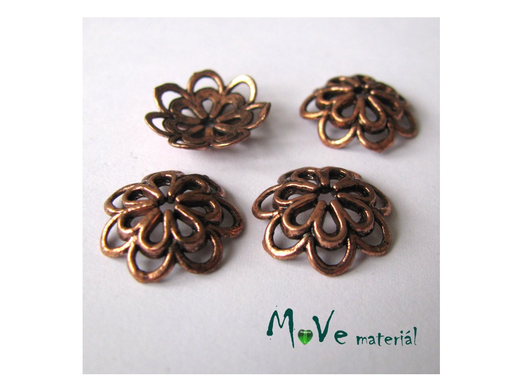 Kaplík 14x4mm květ, 4ks, staroměď