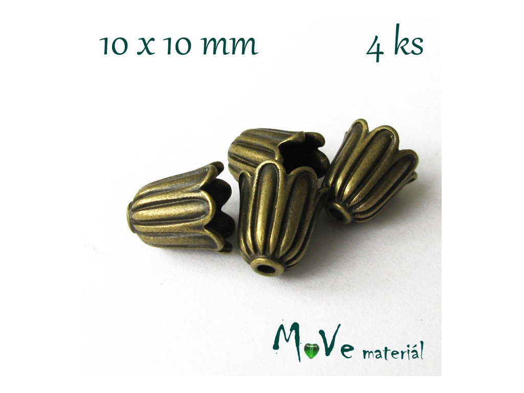 Kaplík ve traru zvonečku. Barva staromosazná, velikost 10x10mm, balení 4ks neobsahuje olovo, nikl ani kadmium