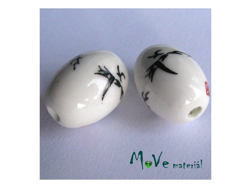 Porcelánový korálek - černé kytičky, 13x18mm, 1 k