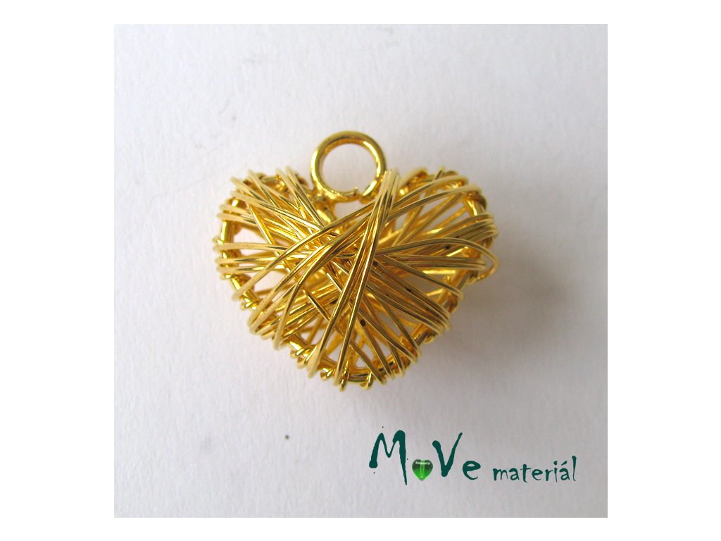Přívěsek 20x22mm drátované srdce zlaté 1ks