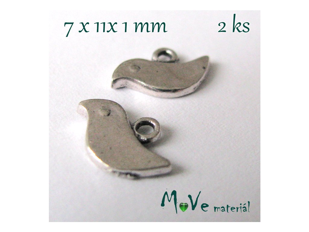 Přívěsek PTÁČEK 7x11x1mm, 2ks, starostříbrný