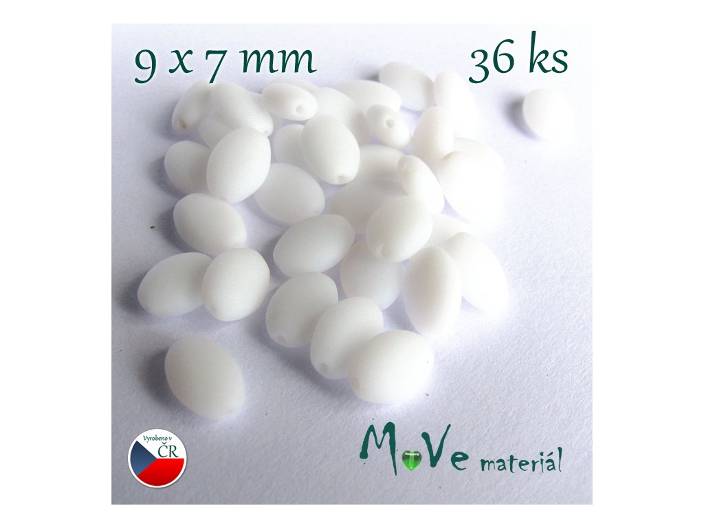 České matné bílé oválky 9x7mm 36ks cca 10g