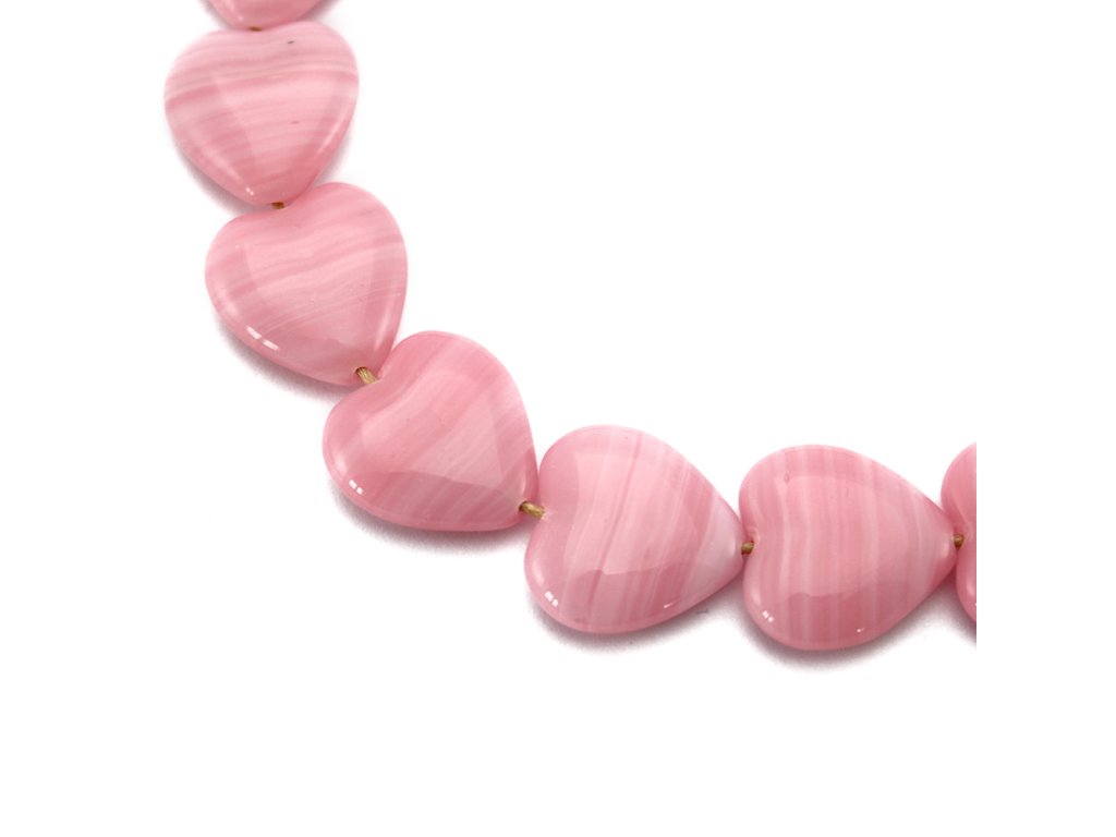 ČESKÝ SKLENĚNÝ KORÁLEK SRDCE 4 KS/RŮŽOVÉ LESKLÉ ŽÍHANÉ