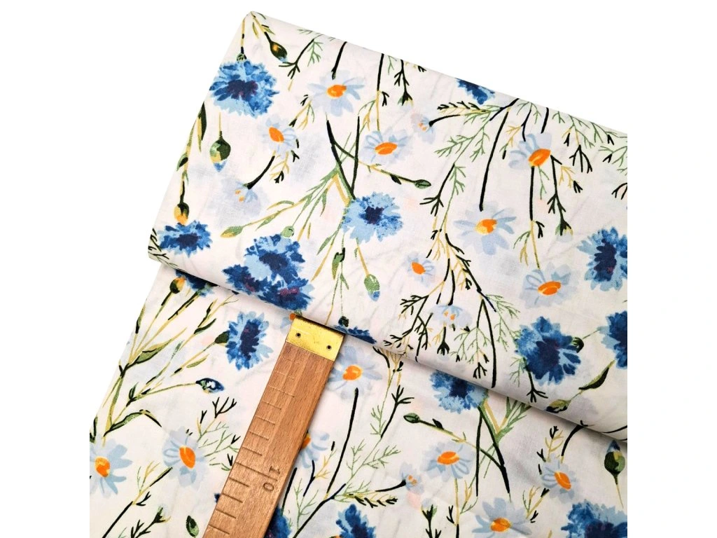 Bavlněné plátno - Chrpy na bílé - šíře 160cm/1bm