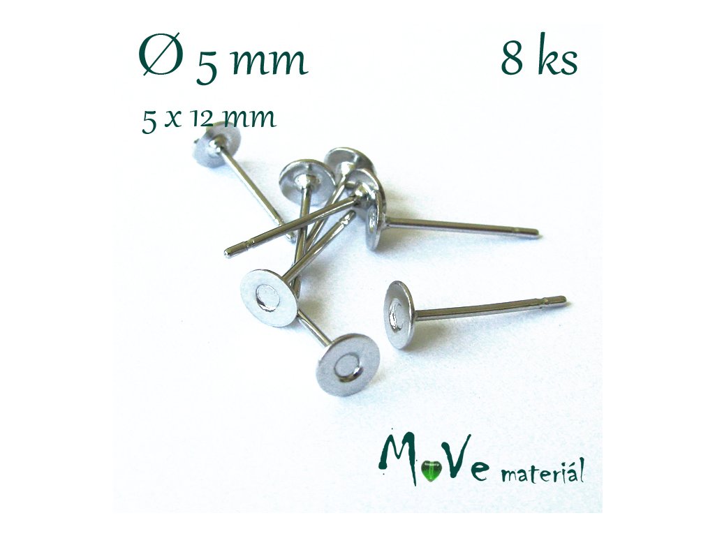 Puzeta s lůžkem (kov) na přilepení ozdoby a z chirurgické oceli (zapichovací trn - 12mm) velikost lůžka 5mm balení 8ks (4 pár) neobsahuje olovo ani kadmium