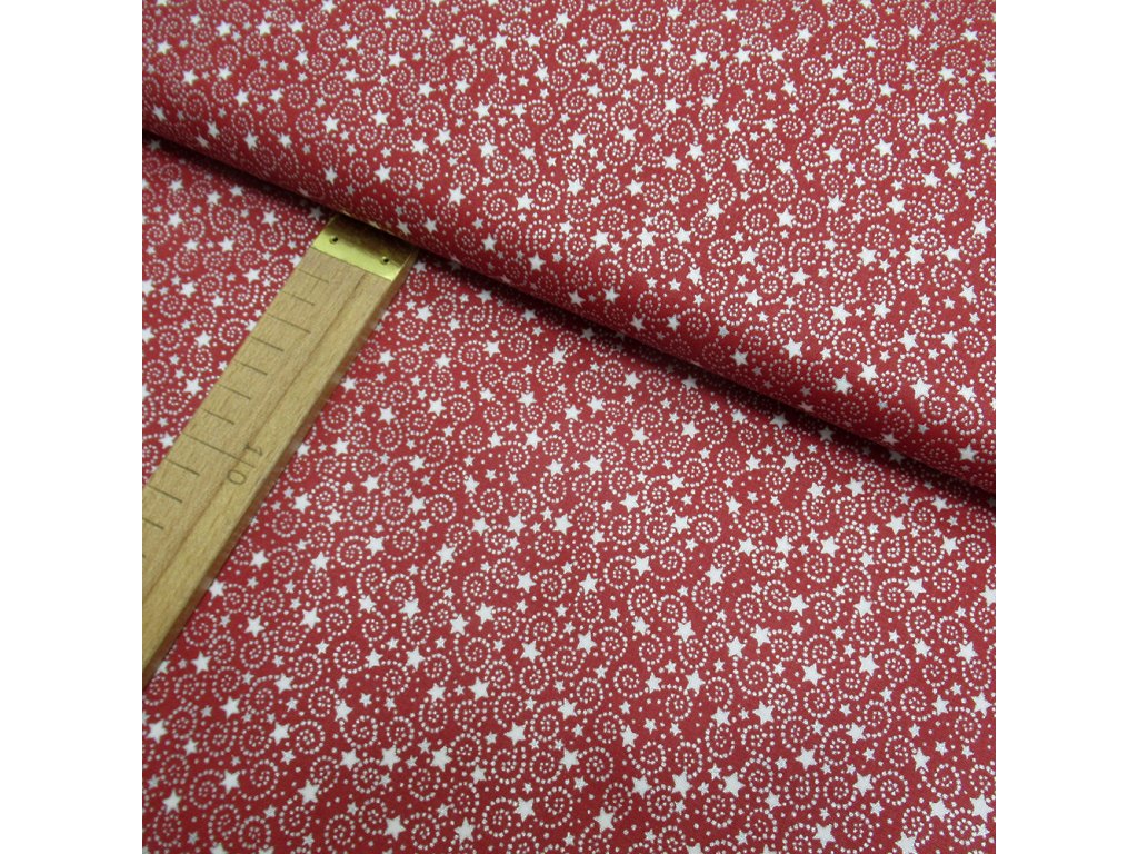 Bavlněné plátno - Hvězdy a spirálky na červené - šíře 140cm/1bm