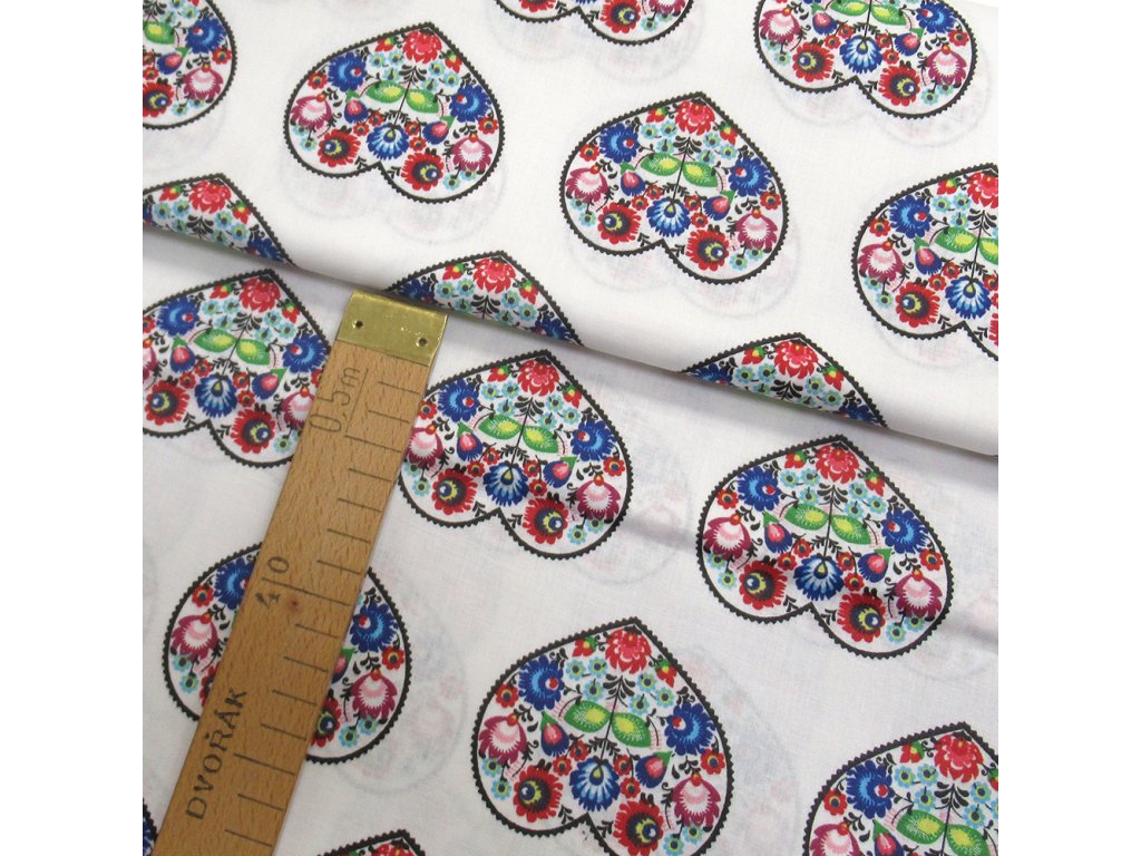 Bavlněné plátno - Srdce folklór - šíře 140cm/1bm