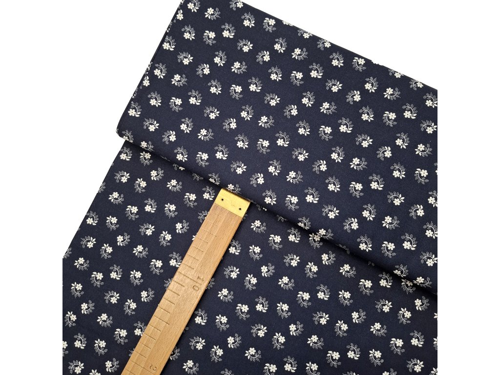 Bavlněné plátno - Bílé květy na tmavě modré - šíře 150cm/1bm