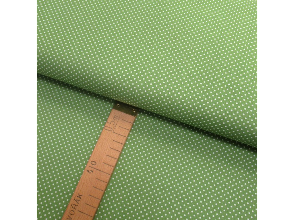 Bavlněné plátno - Puntík bílý na zelené - šíře 150cm/1bm