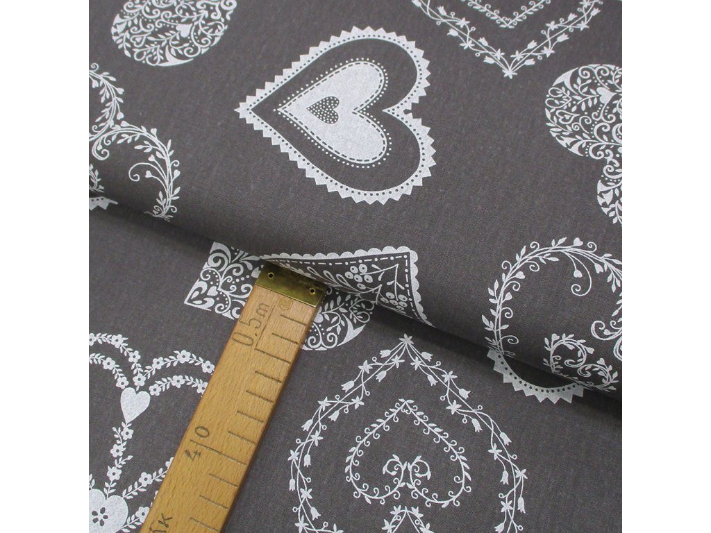 Bavlněné plátno - Srdce bílá na šedé - šíře 150cm/1bm