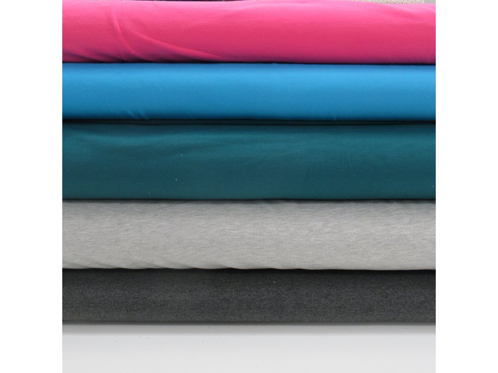 50% bavlna, 45%polyester, 5% elastan 250g/m2