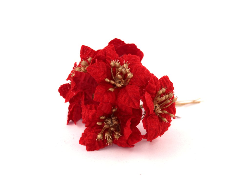 Květ ze z textilu, středové pestíky plastové, Celý květ je připevněn na drátek.