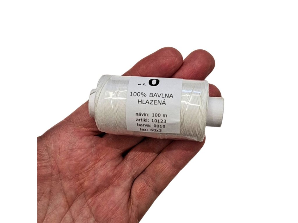 Bižuterní pevná bavlněná niť, cca 0,5mm - tex60x3, vhodné pro navlékání korálků. Návin 100 m