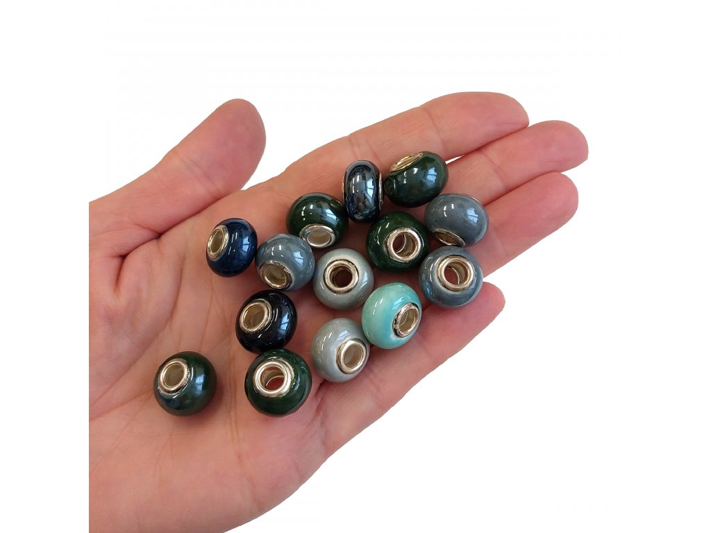 Sada obsahuje 14 porcelánových korálků s širokým průvlekem