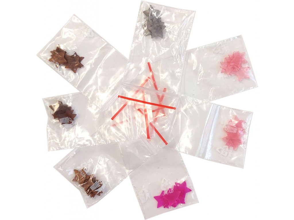 Jeden sáček obsahuje 6 ks penízků - hvězdiček. V sadě je celkem 7 sáčků